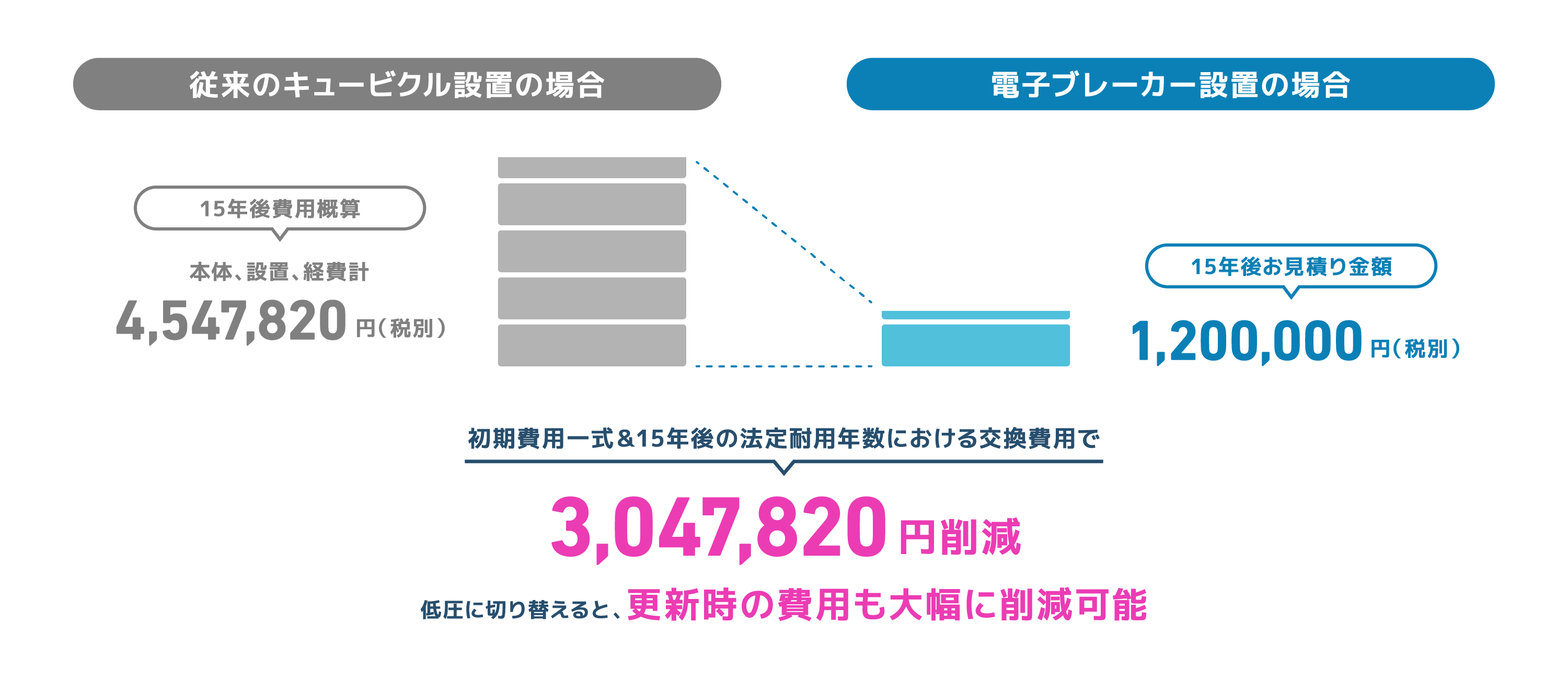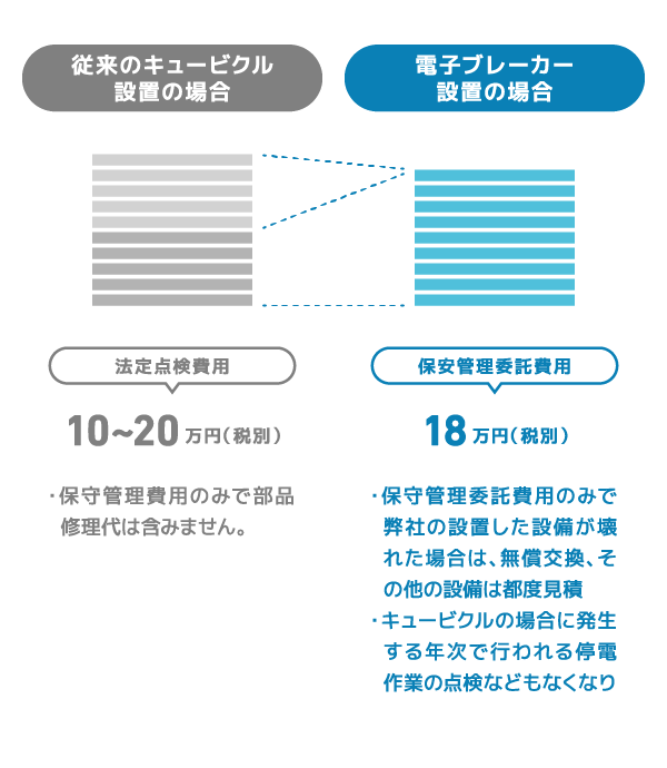 キュービクルを利用せず、運用ができますので、